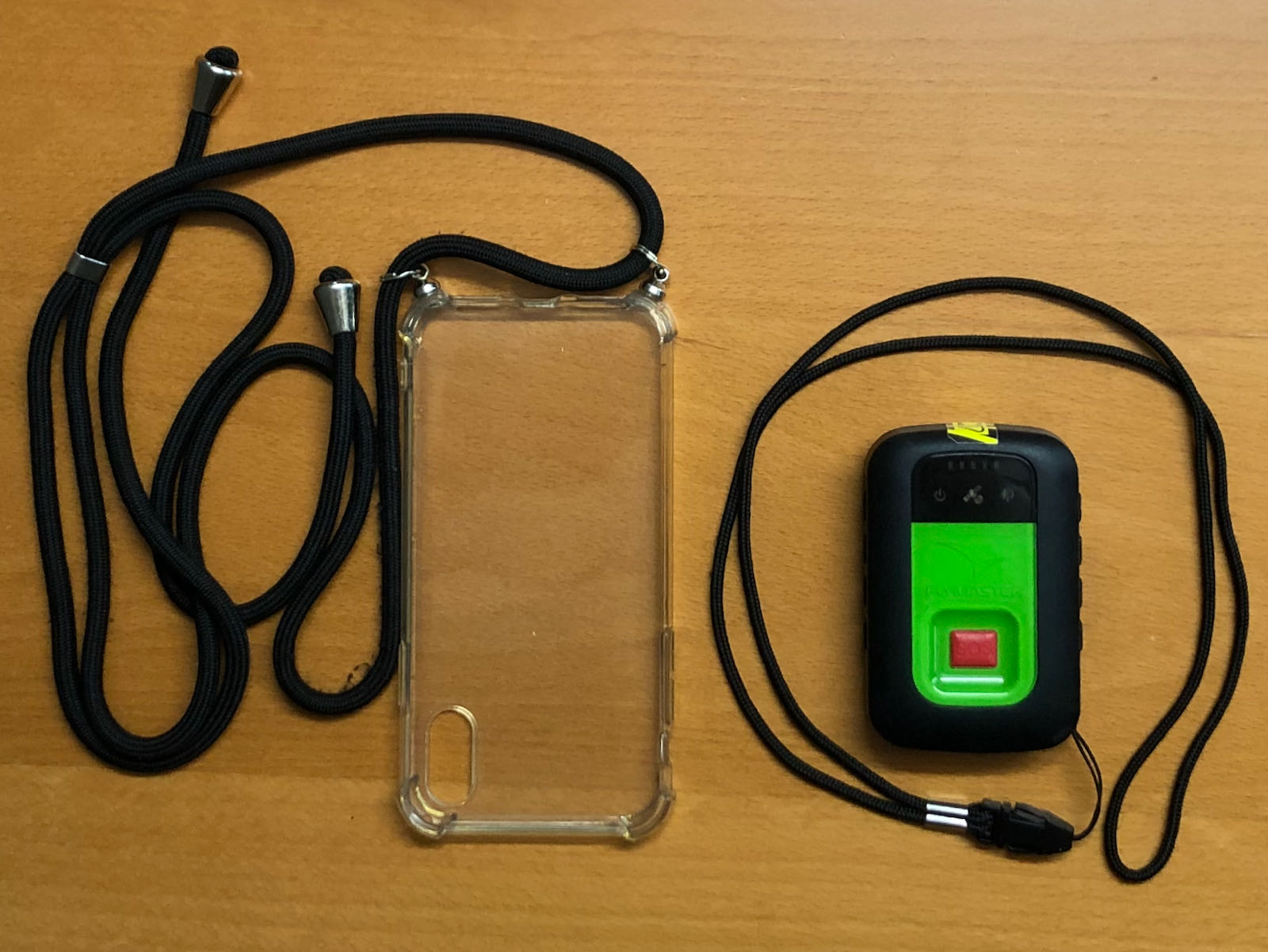 Links mein Handy-Halsband für mein iPhone. Anders als der Tracker hat das sündhaft teure Telefon keine Buchse, in die ein Sicherungsband eingeklinkt werden kann. Da Flüge rumpelig sein können, ist es nicht ratsam, in der Luft mit einem ungesicherten Handy zu telefonieren, beziehungsweise Foto- oder Filmaufnahmen zu machen. In Internet-Shops gibt es zum kleinen Preis Handy-Halsbänder. Das vorliegende habe ich bereits vor ein paar Jahren gekauft. Es hat sich als äußerst nützlich erwiesen. Aufgrund einer Ungeschicklichkeit hatte ich kürzlich einen Bandhalter aus der Kunststoffhülle herausgerissen und nachfolgend eines der beiden Schräubchen verloren, mit denen die Bandhalter an der Hülle befestigt sind. Im Keller fand ich heute eine Schraube mit passendem M2-Gewinde. Was zu lang war, habe ich abgesägt. Sie passt jetzt perfekt. 🪚🪛🙂