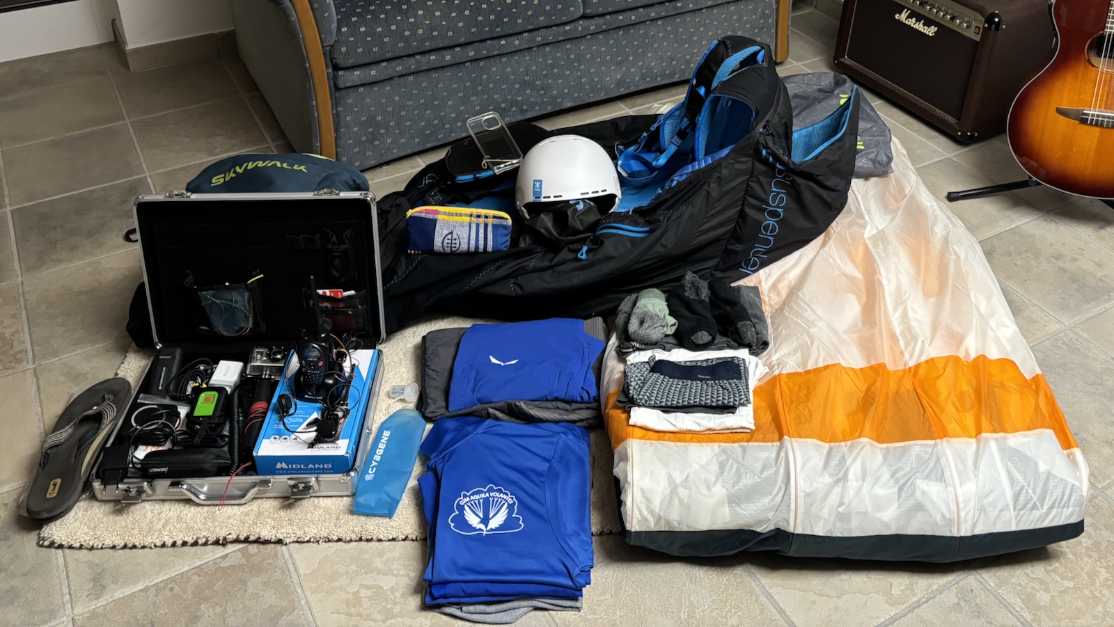 Am Pfingstwochenende legte ich auf dem Teppich in meinem Arbeitszimmer alles bereit, was für eine einwöchige Flugsafari erforderlich ist. Mit meinem schwäbischen Freund Jürgen Kraus aus Gingen hatte ich im vergangenen Winter vereinbart, in der ersten frühsommerlichen Schönwetterperiode in den Alpen auf Tour zu gehen.