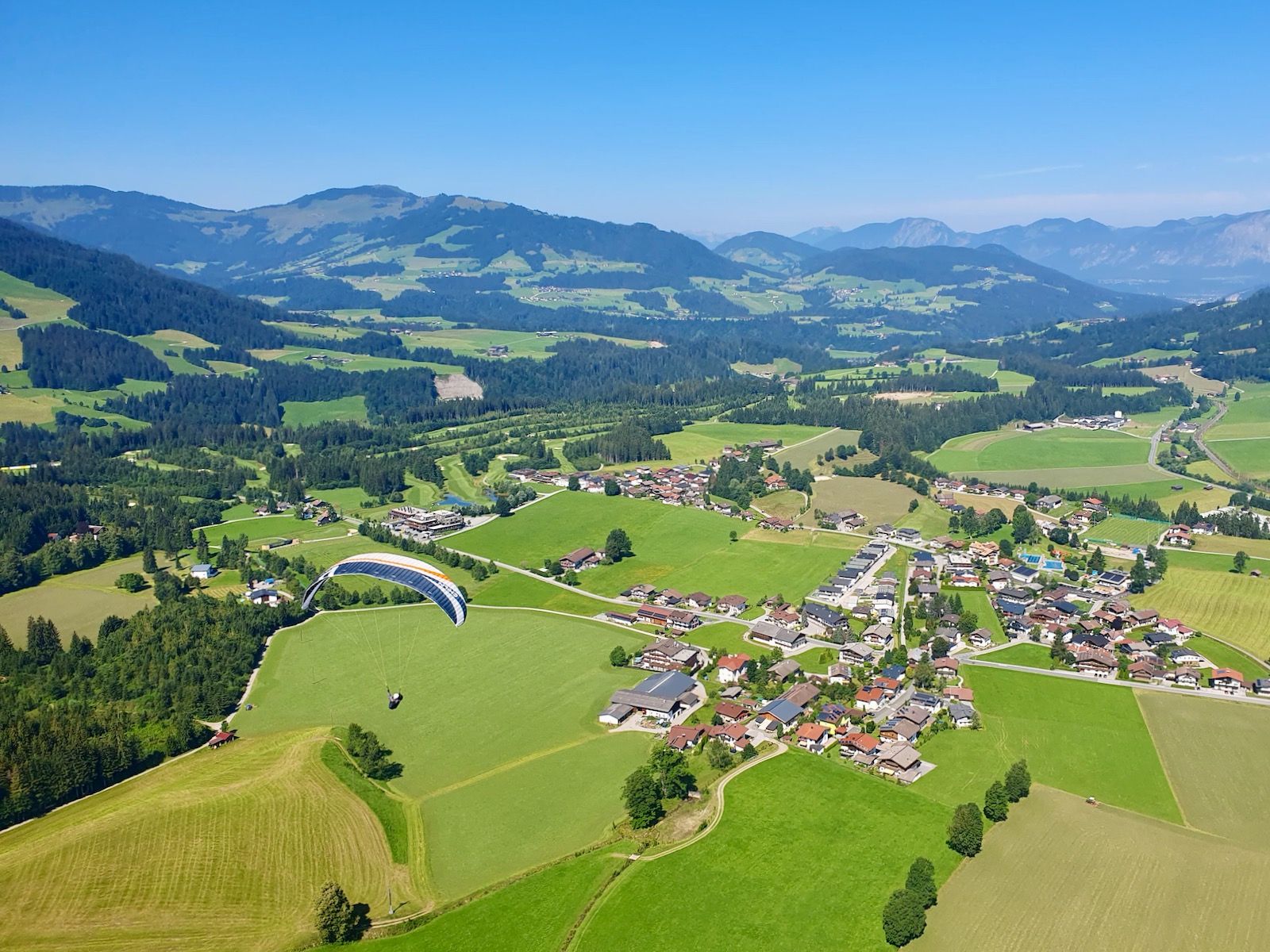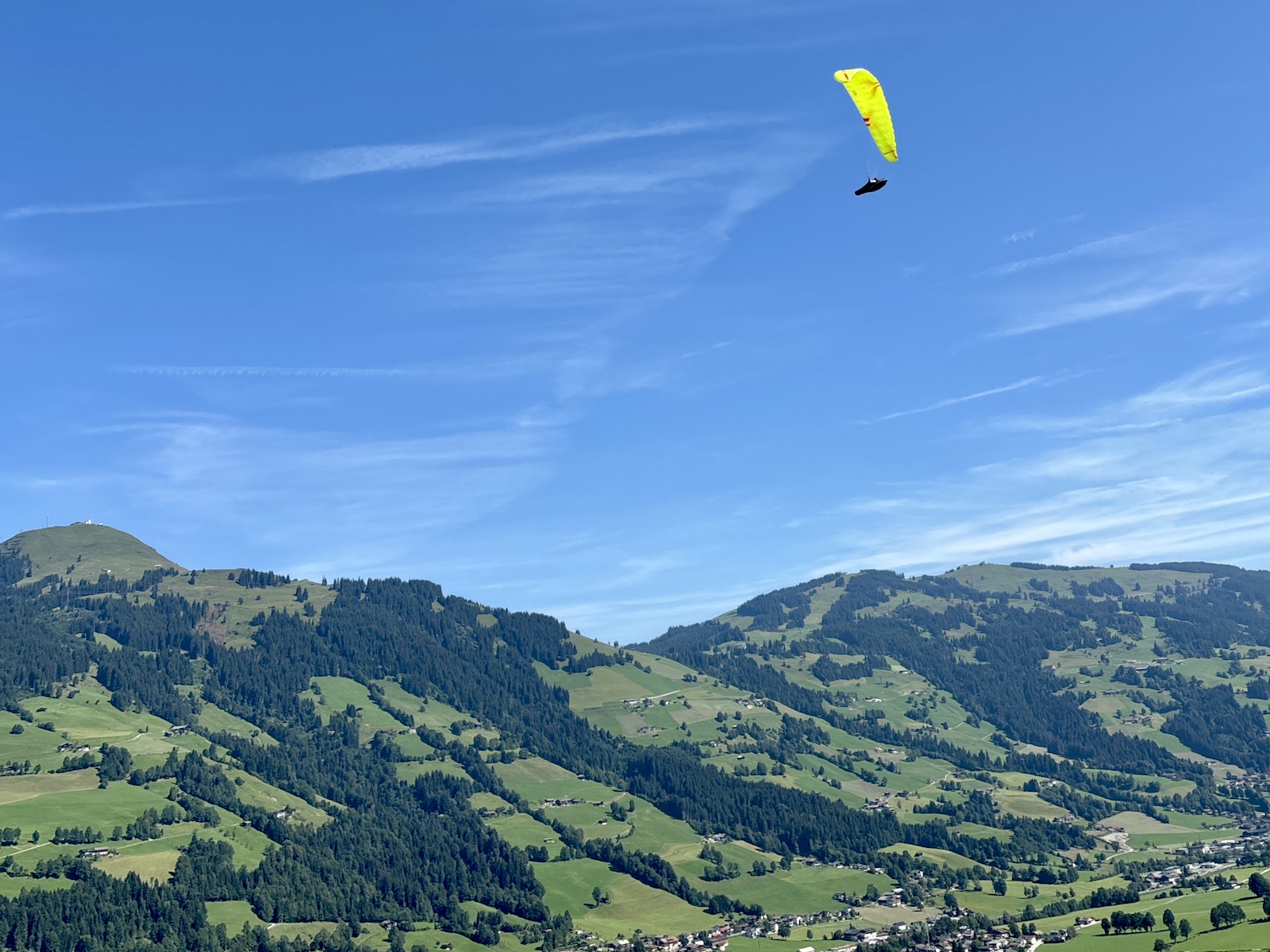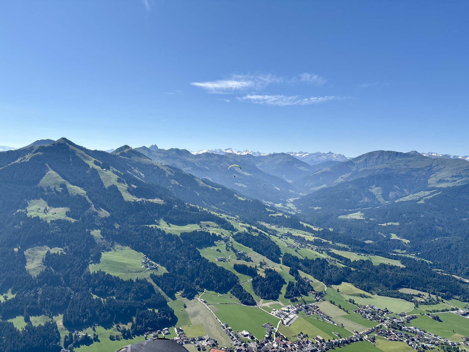 Beim Frühstück, das deutlich besser als die Abendspeisen ist, diskutieren wir den Tagesplan. Das Wetter sieht vielversprechend aus. Unser Ziel haben wir schon gestern gesteckt. Wir wollen heute Zell am See erreichen. Soll das in einem Flug geschehen, müssten wir von der Hohen Salve, dem Hausberg von Söll, mit verlässlicher Thermik das Brixental zur Choralpe queren, um von dort über die Kitzbüheler Alpen ins Pinzgau vorzustoßen. Den Sprung von der Choralpe ins Pinzgau habe ich schon einmal auf eigene Faust im Jahr 2022 gemacht; ich freue mich daher auf die anstehende Wiederholung.