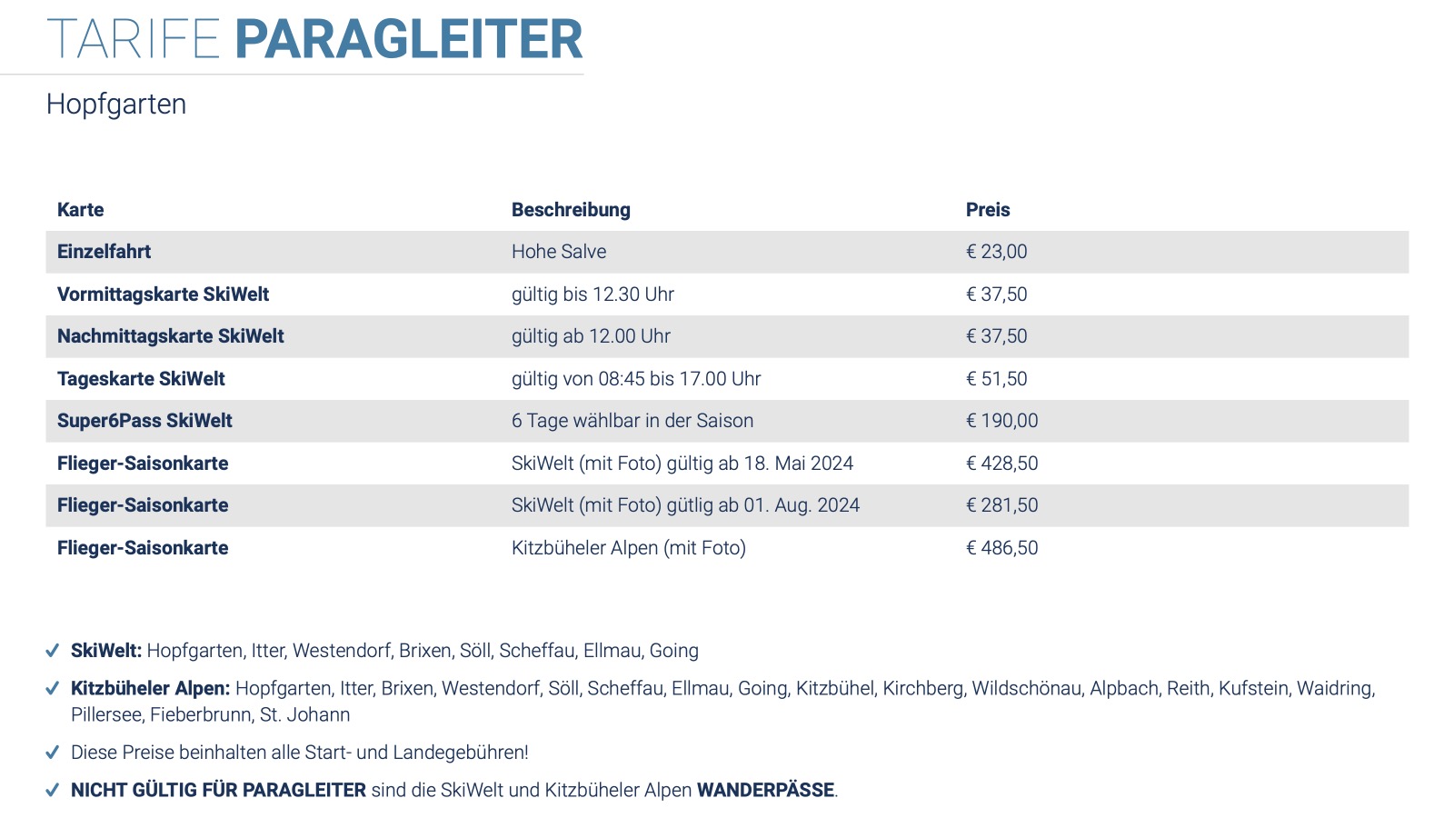 Einzelfahrten auf die Hohe Salve kann ein Paragleiter übrigens nur in Hopfgarten, aber nicht in Söll lösen. Es gibt manchmal wirklich unverständliche Regelungen ...