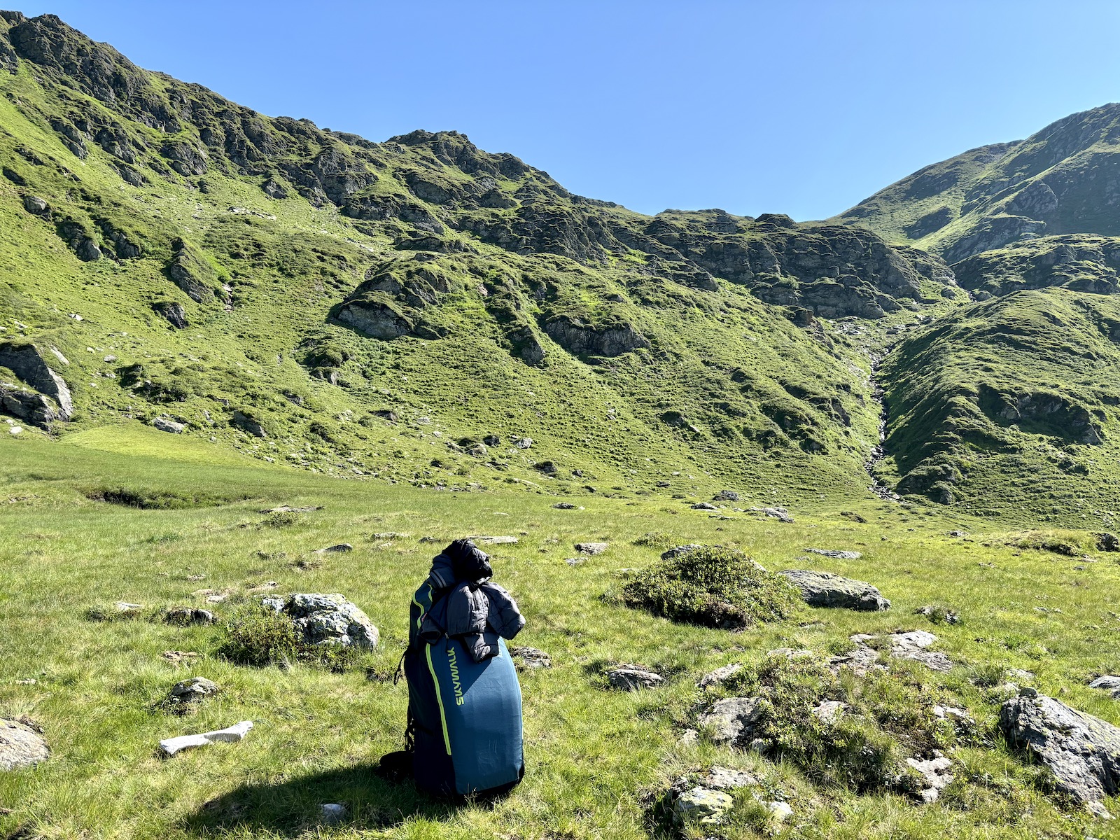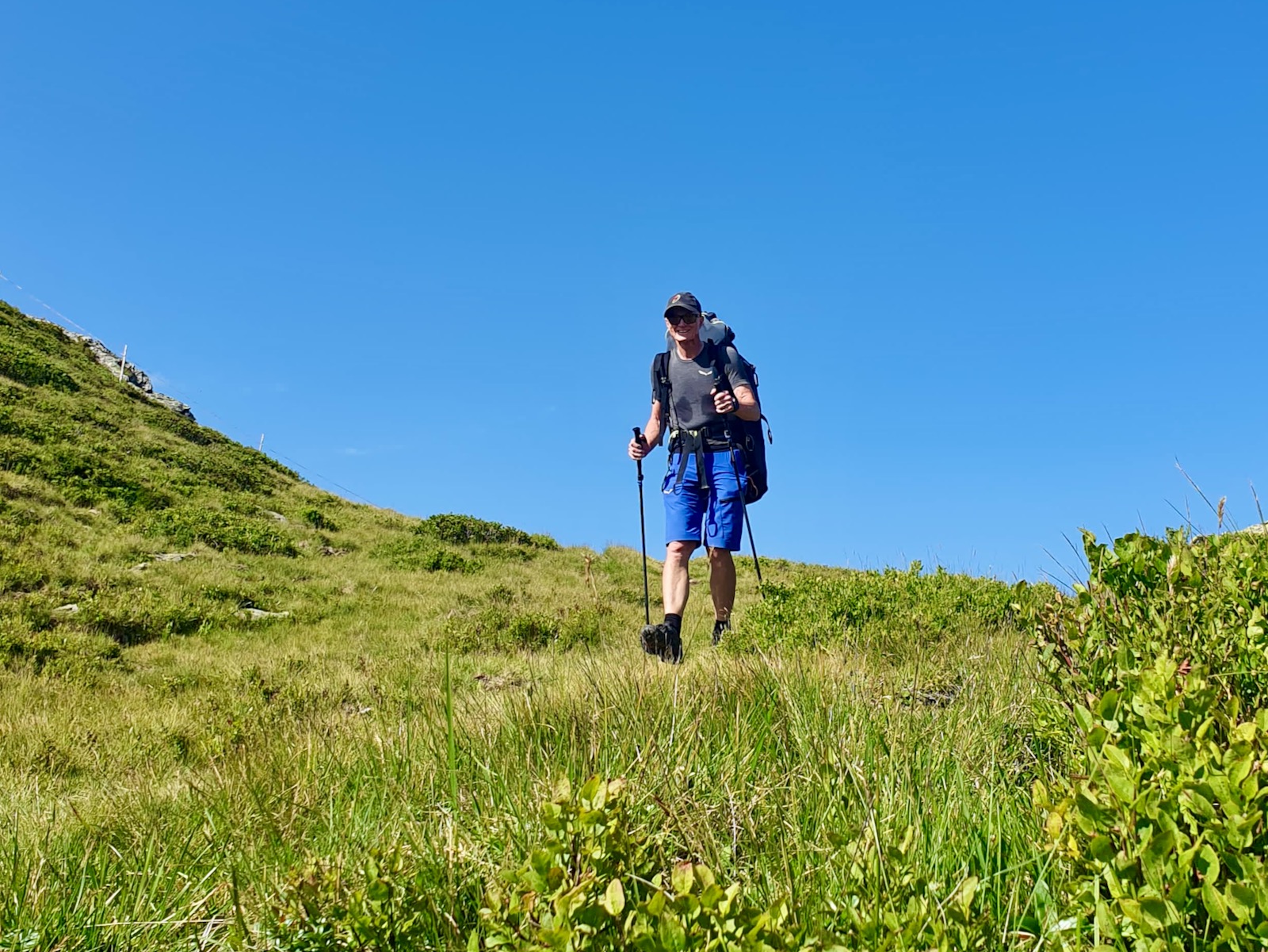 Ich packe ein und begebe mich an den Aufstieg zu Eli. Tatsächlich finde ich einen markierten Wanderweg, verliere ihn aber auch nach einigen hundert Metern wieder. Eli teilt mir über Funk mit, dass sie mir ein Stückchen entgegenkommt. Beinahe wären wir aneinander vorbeigestiefelt, aber plötzlich stehen wir uns lachend gegenüber.