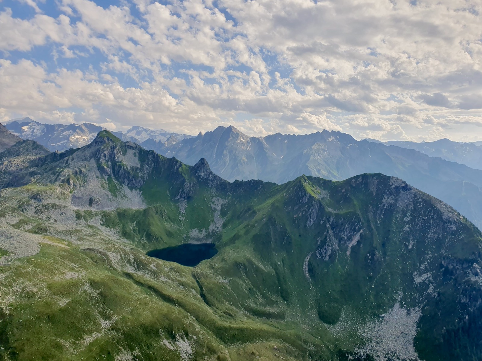 Mit der gewonnenen Höhe fliegt Eli zügig weiter. Ich mache den Fehler, ihr mit gleicher Abflughöhe zu folgen, ohne den Bart bis zum Ende auszukurbeln. Das rächt sich, weil ich mit meinem B-Schirm anders als sie mit ihrem X-Alps-Ferrari nicht oberhalb, sondern unterhalb des Gamsbeil ankomme. Vielleicht hätte ich an dessen Nordwestflanke noch etwas probieren sollen, aber mein Vario sagte keinen Piep; deshalb sehe ich zu, so hoch wie möglich vor dem Steinkogel, der die letzte Barriere zum Pinzgau bildet, einzulanden.